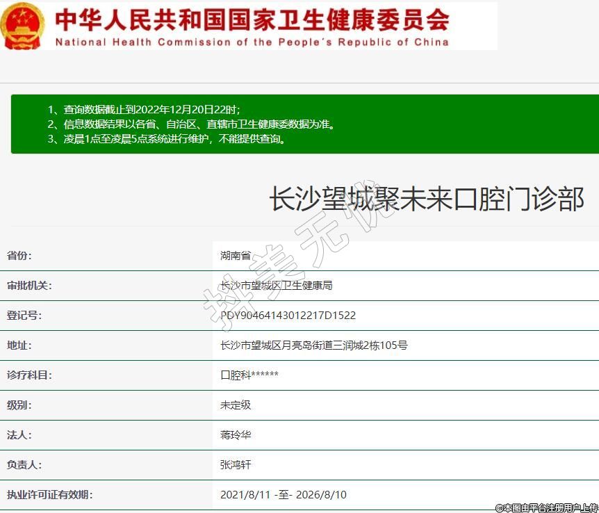 長沙望城聚未來口腔門診部,診療科目:口腔科******