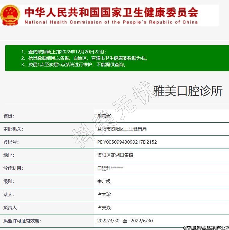 益陽雅美口腔,診療科目:口腔科******