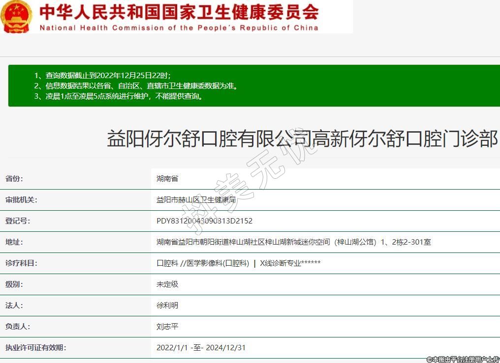 益陽伢爾舒口腔有限公司高新伢爾舒口腔門診部