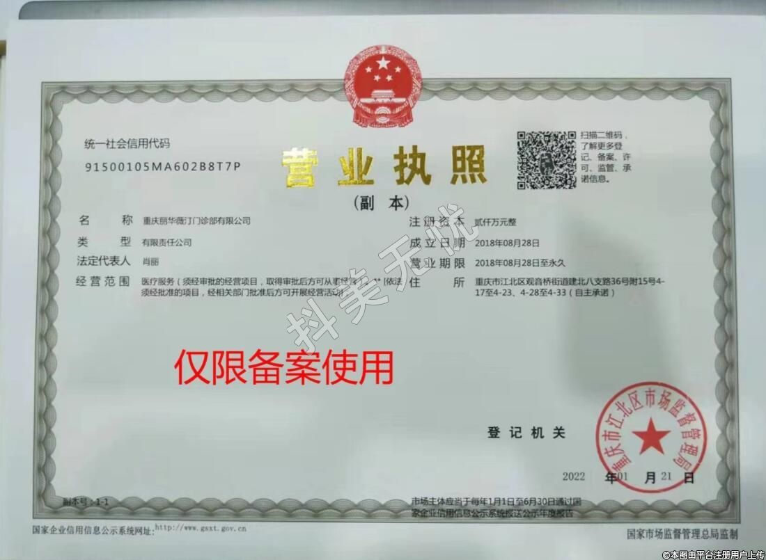 發(fā)證機關:重慶市江北區(qū)衛(wèi)生健康委員會