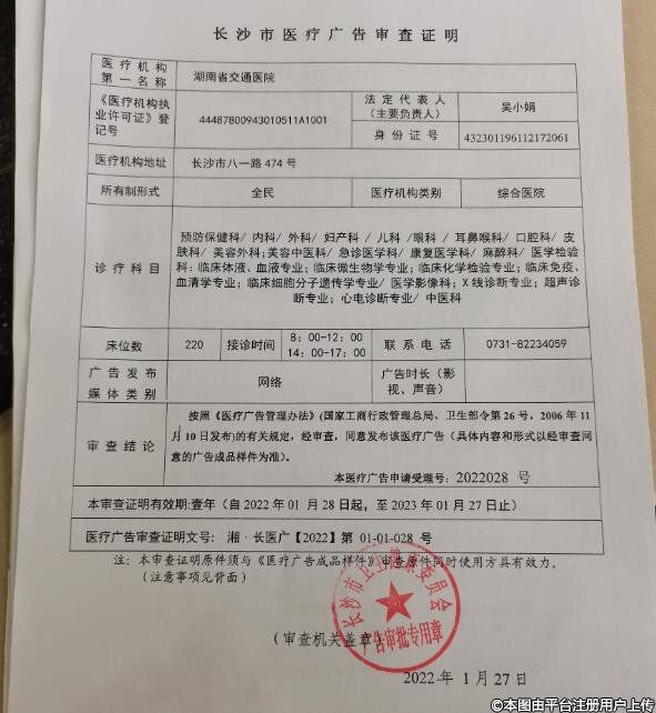 發(fā)證機(jī)關(guān):長(zhǎng)沙市衛(wèi)生健康委員會(huì)