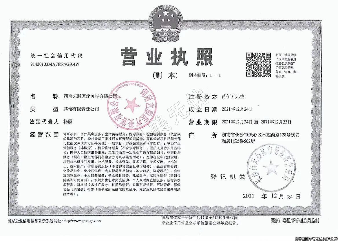 機構名稱:長沙天心藝脂醫(yī)療美容門診部
