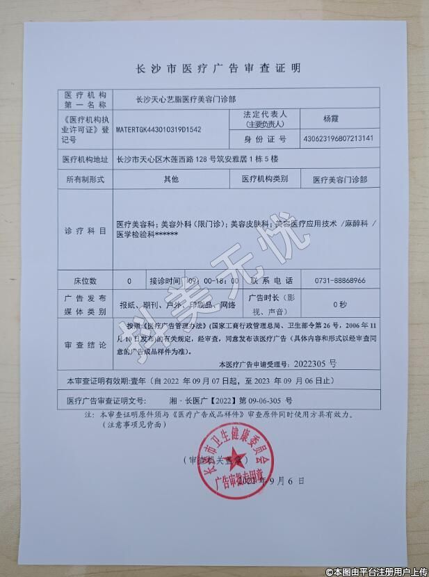 發(fā)證機關:長沙市天心區(qū)衛(wèi)生健康局