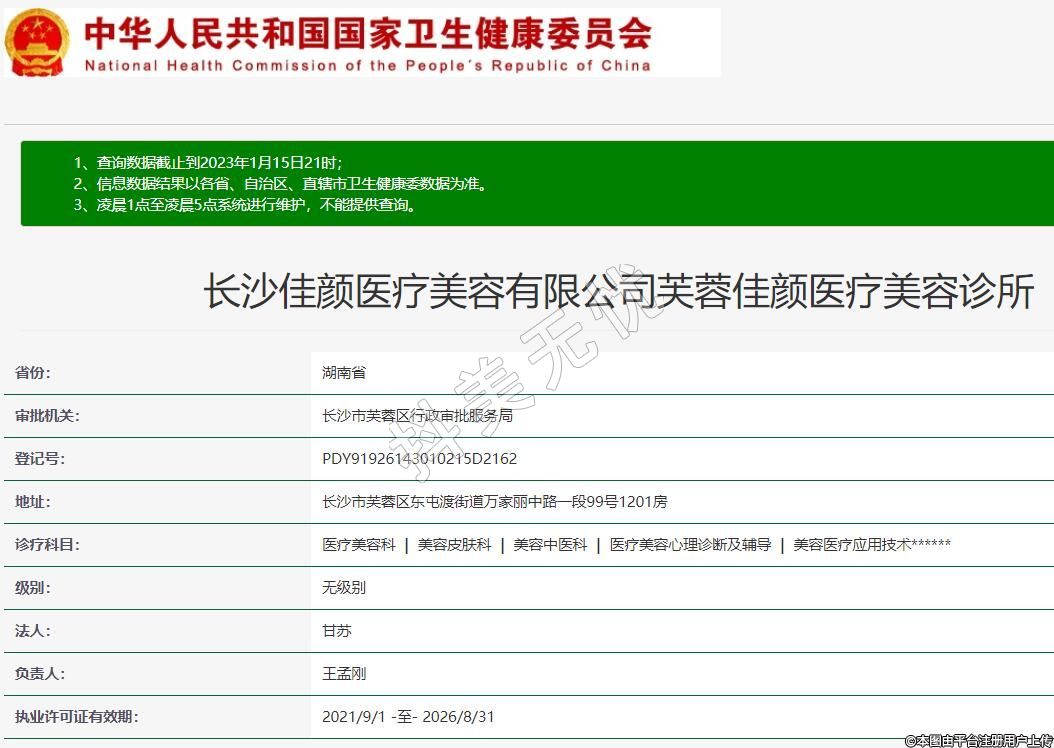 長(zhǎng)沙佳顏醫(yī)療美容有限公司芙蓉佳顏醫(yī)療美容診所