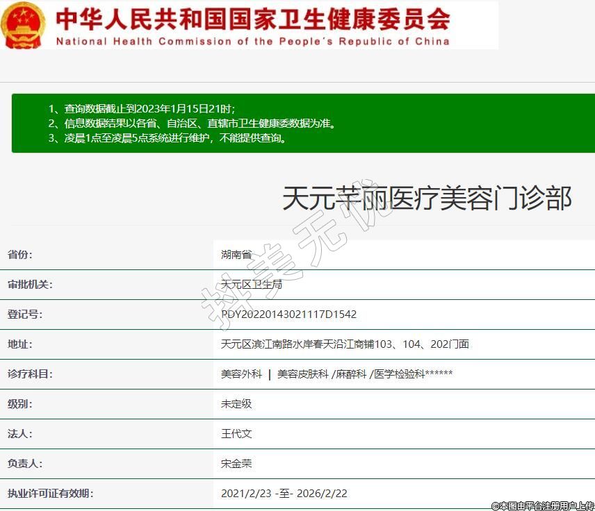 天元芊麗醫(yī)療美容門診部,診療科目:美容外科  |  美容皮膚科 /麻醉科 /醫(yī)學(xué)檢驗(yàn)科******