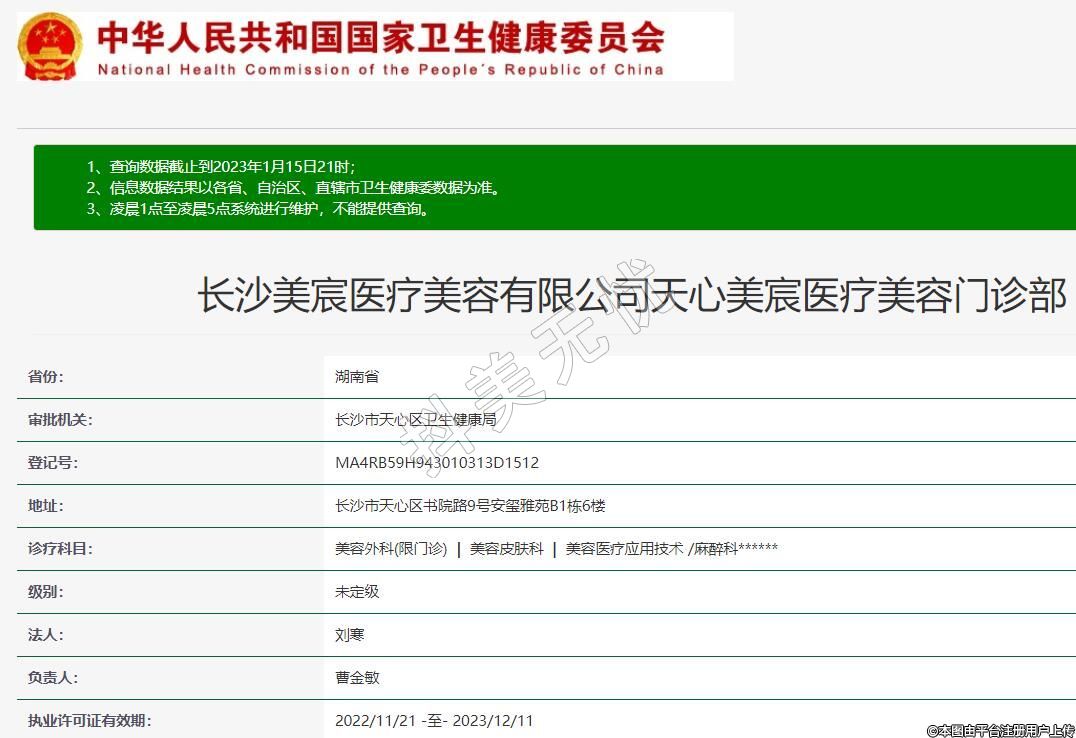 長(zhǎng)沙美宸醫(yī)療美容有限公司天心美宸醫(yī)療美容門診部