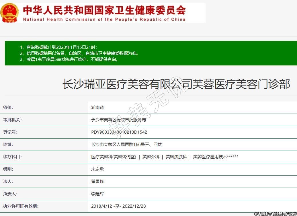 長沙瑞亞醫(yī)療美容有限公司芙蓉醫(yī)療美容門診部