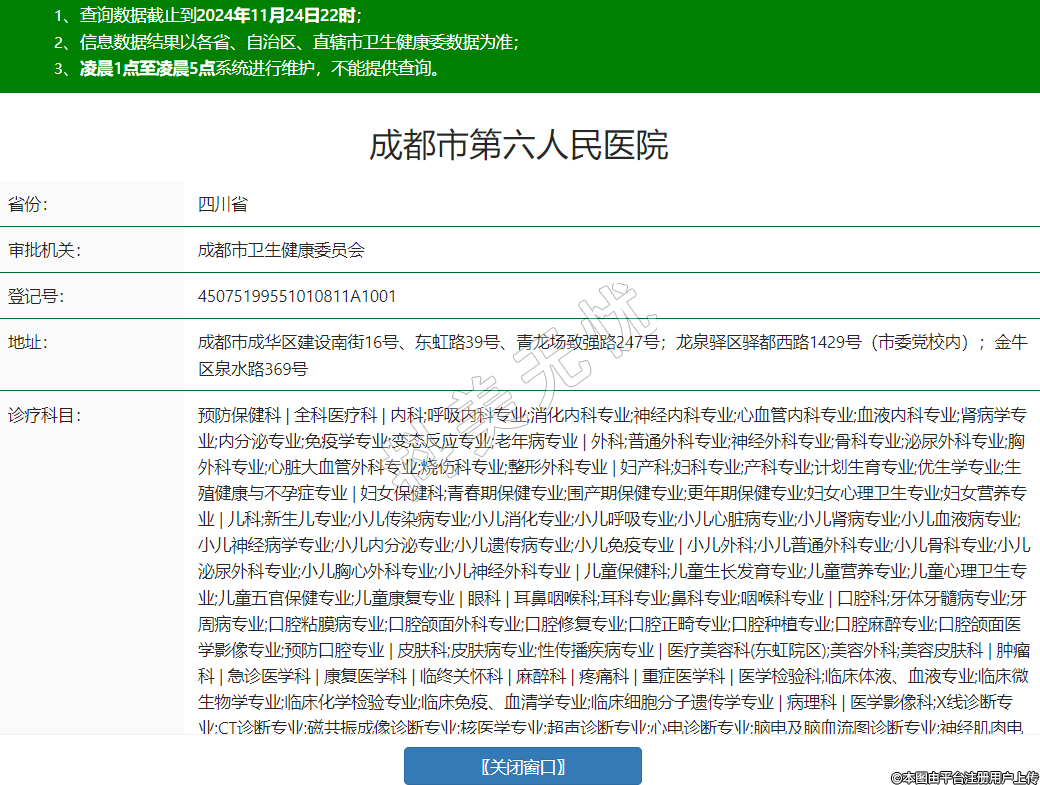預(yù)防保健科 | 全科醫(yī)療科 | 內(nèi)科;呼吸內(nèi)科專業(yè);消化內(nèi)科專業(yè);神經(jīng)內(nèi)科專業(yè);心血管內(nèi)科專業(yè);血液內(nèi)科專業(yè);腎病學(xué)專業(yè);內(nèi)分泌專業(yè);免疫學(xué)專業(yè);變態(tài)反應(yīng)專業(yè);老年病專業(yè) | 外科;普通外科專業(yè);神經(jīng)外科專業(yè);骨科專業(yè);泌尿外科專業(yè);胸外科專業(yè);心臟大血管外科專業(yè);燒傷科專業(yè);整形外科專業(yè) | 婦產(chǎn)科;婦科專業(yè);產(chǎn)科專業(yè);計(jì)劃生育專業(yè);優(yōu)生學(xué)專業(yè);生殖健康與不孕癥專業(yè) | 婦女保健科;青春期保健專業(yè);圍產(chǎn)期保健專業(yè);更年期保健專業(yè);婦女心理衛(wèi)生專業(yè);婦女營(yíng)養(yǎng)專業(yè) | 兒科;新生兒專業(yè);小兒傳染病專業(yè);小兒消化專業(yè);小兒呼吸專業(yè);小兒心臟病專業(yè);小兒腎病專業(yè);小兒血液病專業(yè);小兒神經(jīng)病學(xué)專業(yè);小兒內(nèi)分泌專業(yè);小兒遺傳病專業(yè);小兒免疫專業(yè) | 小兒外科;小兒普通外科專業(yè);小兒骨科專業(yè);小兒泌尿外科專業(yè);小兒胸心外科專業(yè);小兒神經(jīng)外科專業(yè) | 兒童保健科;兒童生長(zhǎng)發(fā)育專業(yè);兒童營(yíng)養(yǎng)專業(yè);兒童心理衛(wèi)生專業(yè);兒童五官保健專業(yè);兒童康復(fù)專業(yè) | 眼科 | 耳鼻咽喉科;耳科專業(yè);鼻科專業(yè);咽喉科專業(yè) | 口腔科;牙體牙髓病專業(yè);牙周病專業(yè);口腔粘膜病專業(yè);口腔頜面外科專業(yè);口腔修復(fù)專業(yè);口腔正畸專業(yè);口腔種植專業(yè);口腔麻醉專業(yè);口腔頜面醫(yī)學(xué)影像專業(yè);預(yù)防口腔專業(yè) | 皮膚科;皮膚病專業(yè);性傳播疾病專業(yè) | 醫(yī)療美容科(東虹院區(qū));美容外科;美容皮膚科 | 腫瘤科 | 急診醫(yī)學(xué)科 | 康復(fù)醫(yī)學(xué)科 | 臨終關(guān)懷科 | 麻醉科 | 疼痛科 | 重癥醫(yī)學(xué)科 | 醫(yī)學(xué)檢驗(yàn)科;臨床體液、血液專業(yè);臨床微生物學(xué)專業(yè);臨床化學(xué)檢驗(yàn)專業(yè);臨床免疫、血清學(xué)專業(yè);臨床細(xì)胞分子遺傳學(xué)專業(yè) | 病理科 | 醫(yī)學(xué)影像科;X線診斷專業(yè);CT診斷專業(yè);磁共振成像診斷專業(yè);核醫(yī)學(xué)專業(yè);超聲診斷專業(yè);心電診斷專業(yè);腦電及腦血流圖診斷專業(yè);神經(jīng)肌肉電圖專業(yè);介入放射學(xué)專業(yè) | 中醫(yī)科;內(nèi)科專業(yè);外科專業(yè);婦產(chǎn)科專業(yè);兒科專業(yè);皮膚科專業(yè);眼科專業(yè);耳鼻咽喉科專業(yè);口腔科專業(yè);腫瘤科專業(yè);骨傷科專業(yè);肛腸科專業(yè);老年病科專業(yè);針灸科專業(yè);推拿科專業(yè);康復(fù)醫(yī)學(xué)專業(yè);急診科專業(yè) | 中西醫(yī)結(jié)合科(其他許可信息詳見(jiàn)副本)******