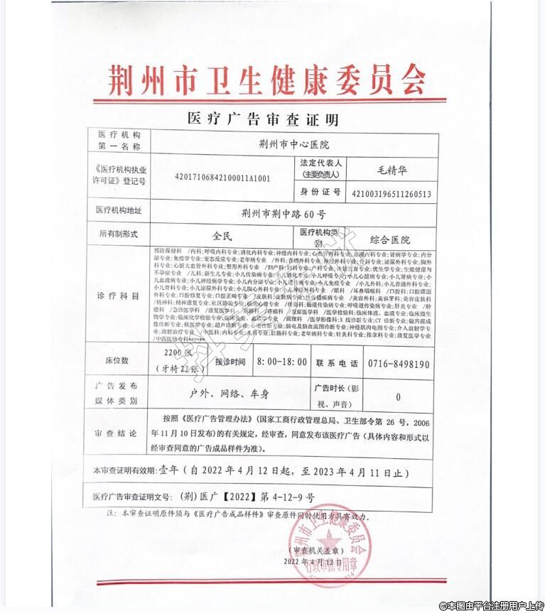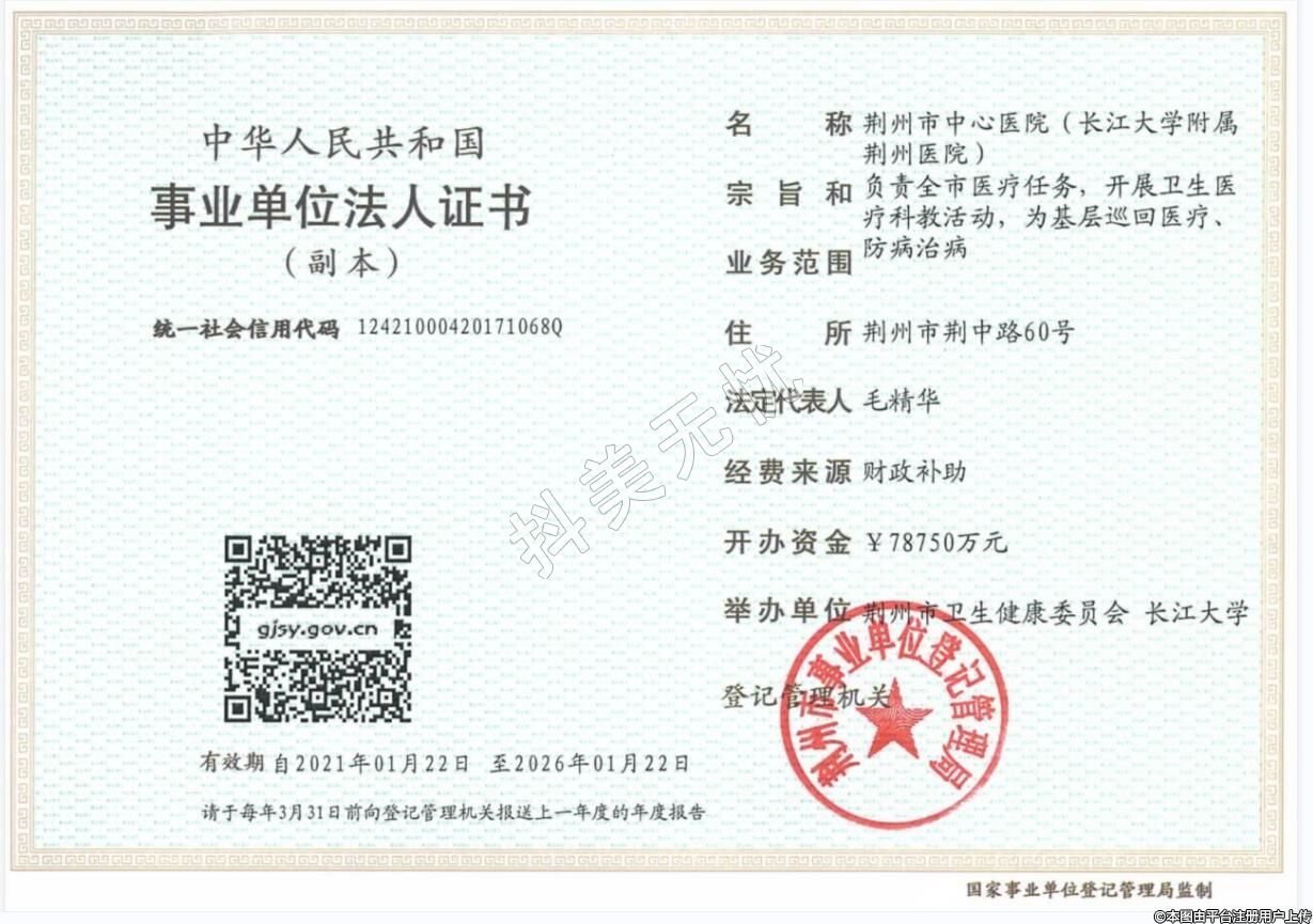 機構名稱:荊州市中心醫(yī)院