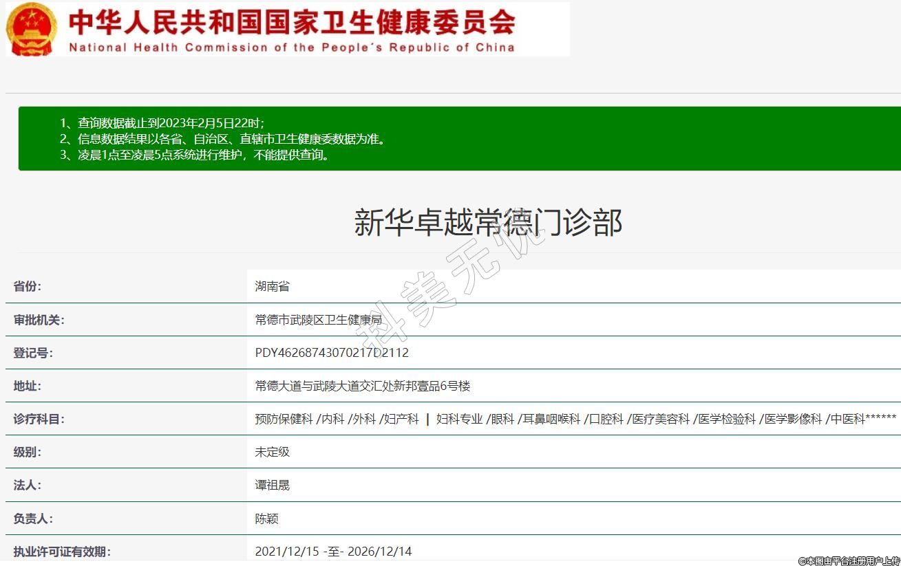 審批機關:常德市武陵區(qū)衛(wèi)生健康局