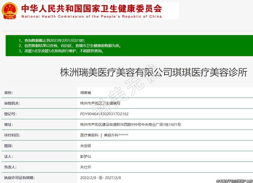 株洲瑞美醫(yī)療美容有限公司琪琪醫(yī)療美容診所