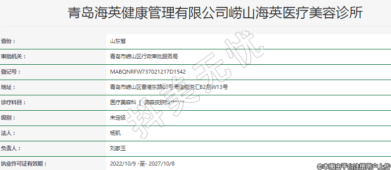 青島海英健康管理有限公司嶗山海英醫(yī)療美容診所