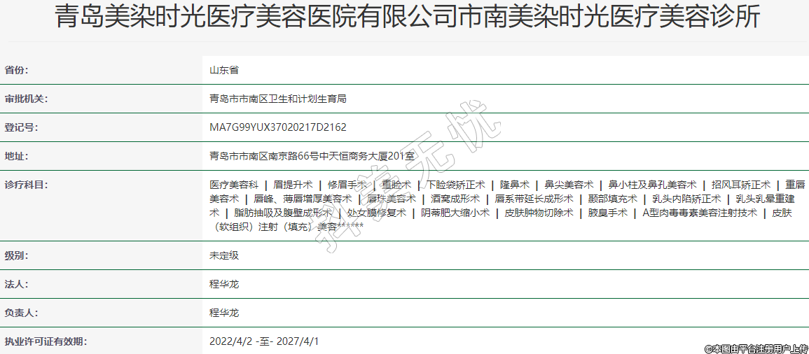 青島美染時(shí)光醫(yī)療美容醫(yī)院有限公司市南美染時(shí)光醫(yī)療美容診所