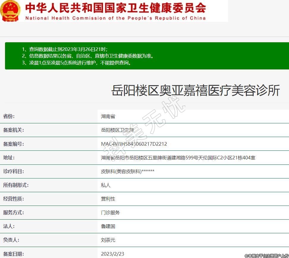 備案機關(guān):岳陽樓區(qū)衛(wèi)生局