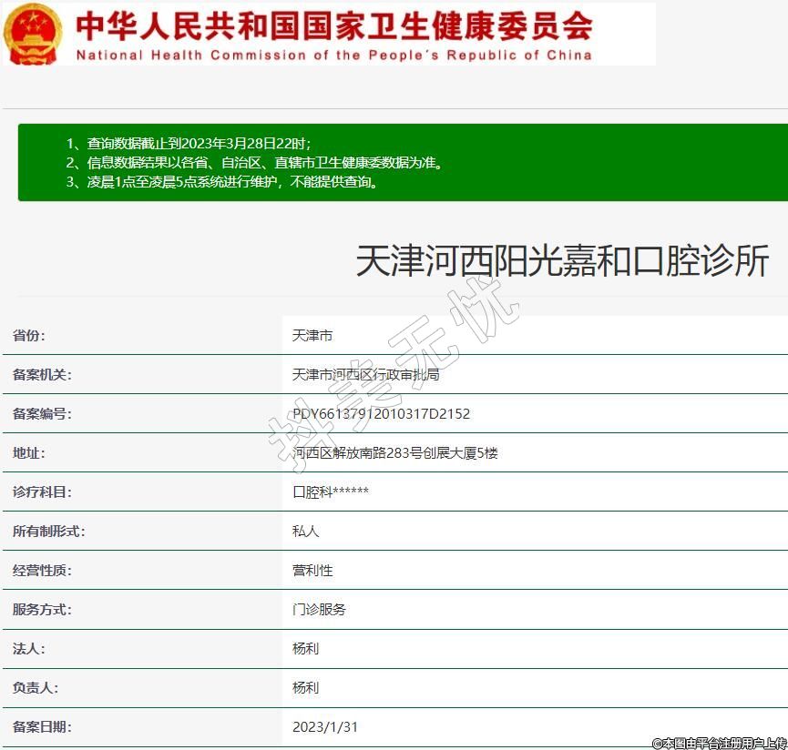 天津陽光嘉和口腔(河西)診療科目:口腔科******