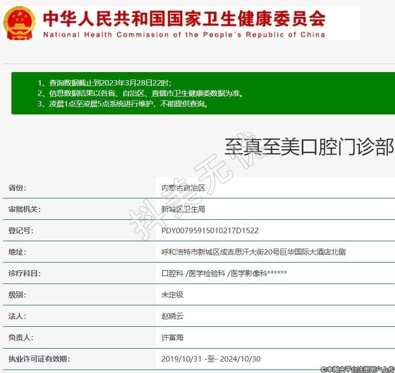 呼和浩特至美口腔(巨華酒店)診療科目:口腔科 /醫(yī)學(xué)檢驗科 /醫(yī)學(xué)影像科******