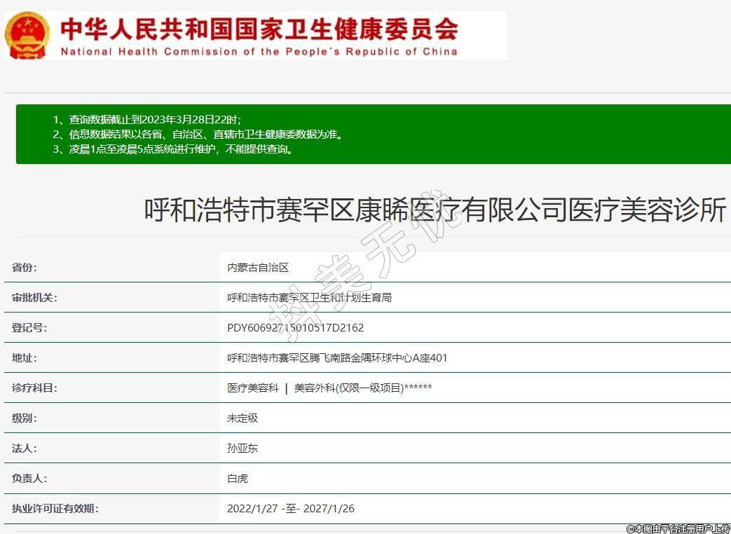 呼和浩特市賽罕區(qū)康睎醫(yī)療有限公司醫(yī)療美容診所