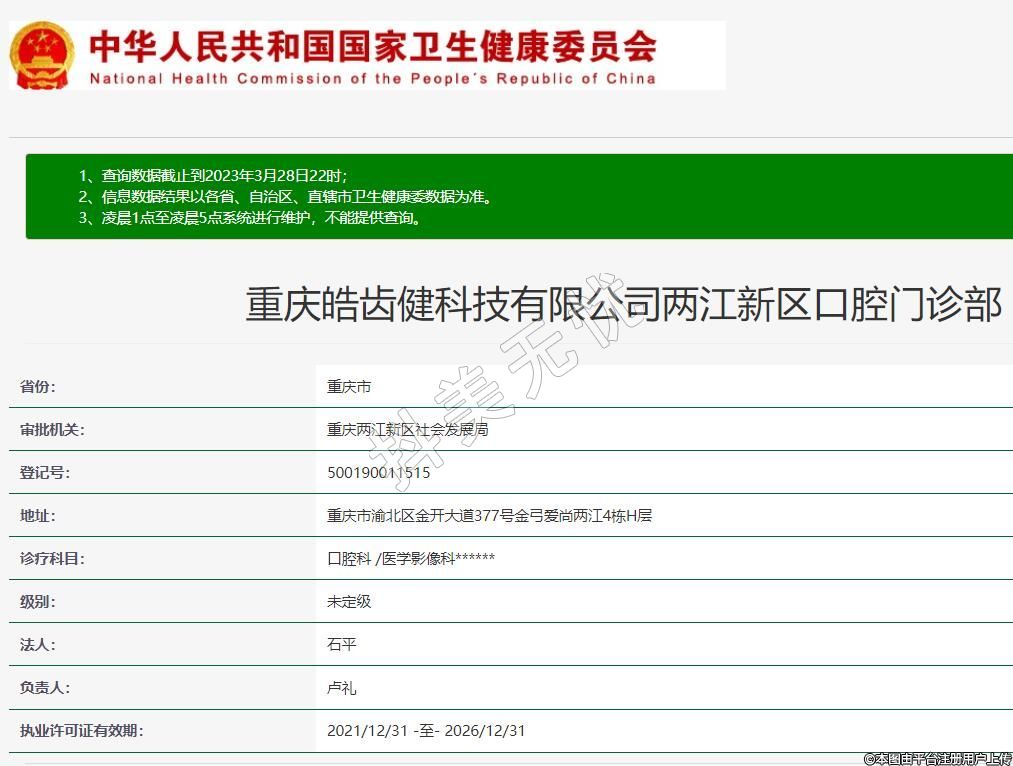 重慶皓齒健科技有限公司兩江新區(qū)口腔門診部