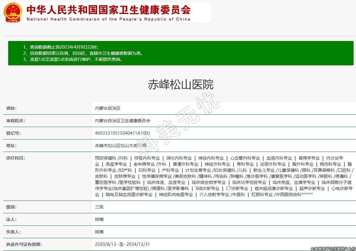 執(zhí)業(yè)許可證有效期:2020/8/13 -至- 2034/12/31