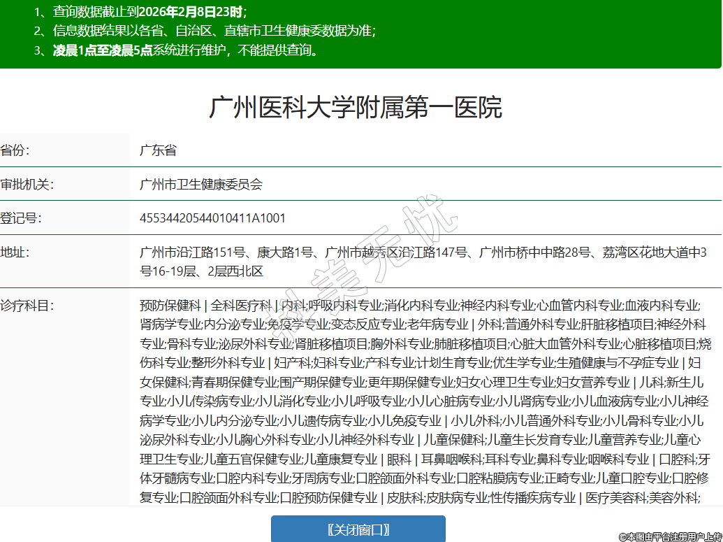 省份:廣東省審批機(jī)關(guān):廣州市衛(wèi)生健康委員會(huì)登記號(hào):45534420544010411A1001地址:廣州市沿江路151號(hào)、康大路1號(hào)、廣州市越秀區(qū)沿江路147號(hào)、廣州市橋中中路28號(hào)、荔灣區(qū)花地大道中3號(hào)16-19層、2層西北區(qū)診療科目:預(yù)防保健科 | 全科醫(yī)療科 | 內(nèi)科;呼吸內(nèi)科專業(yè);消化內(nèi)科專業(yè);神經(jīng)內(nèi)科專業(yè);心血管內(nèi)科專業(yè);血液內(nèi)科專業(yè);腎病學(xué)專業(yè);內(nèi)分泌專業(yè);免疫學(xué)專業(yè);變態(tài)反應(yīng)專業(yè);老年病專業(yè) | 外科;普通外科專業(yè);肝臟移植項(xiàng)目;神經(jīng)外科專業(yè);骨科專業(yè);泌尿外科專業(yè);腎臟移植項(xiàng)目;胸外科專業(yè);肺臟移植項(xiàng)目;心臟大血管外科專業(yè);心臟移植項(xiàng)目;燒傷科專業(yè);整形外科專業(yè) | 婦產(chǎn)科;婦科專業(yè);產(chǎn)科專業(yè);計(jì)劃生育專業(yè);優(yōu)生學(xué)專業(yè);生殖健康與不孕癥專業(yè) | 婦女保健科;青春期保健專業(yè);圍產(chǎn)期保健專業(yè);更年期保健專業(yè);婦女心理衛(wèi)生專業(yè);婦女營(yíng)養(yǎng)專業(yè) | 兒科;新生兒專業(yè);小兒傳染病專業(yè);小兒消化專業(yè);小兒呼吸專業(yè);小兒心臟病專業(yè);小兒腎病專業(yè);小兒血液病專業(yè);小兒神經(jīng)病學(xué)專業(yè);小兒內(nèi)分泌專業(yè);小兒遺傳病專業(yè);小兒免疫專業(yè) | 小兒外科;小兒普通外科專業(yè);小兒骨科專業(yè);小兒泌尿外科專業(yè);小兒胸心外科專業(yè);小兒神經(jīng)外科專業(yè) | 兒童保健科;兒童生長(zhǎng)發(fā)育專業(yè);兒童營(yíng)養(yǎng)專業(yè);兒童心理衛(wèi)生專業(yè);兒童五官保健專業(yè);兒童康復(fù)專業(yè) | 眼科 | 耳鼻咽喉科;耳科專業(yè);鼻科專業(yè);咽喉科專業(yè) | 口腔科;牙體牙髓病專業(yè);口腔內(nèi)科專業(yè);牙周病專業(yè);口腔頜面外科專業(yè);口腔粘膜病專業(yè);正畸專業(yè);兒童口腔專業(yè);口腔修復(fù)專業(yè);口腔頜面外科專業(yè);口腔預(yù)防保健專業(yè) | 皮膚科;皮膚病專業(yè);性傳播疾病專業(yè) | 醫(yī)療美容科;美容外科;美容牙科;美容皮膚科;美容中醫(yī)科 | 精神科;精神病專業(yè);精神衛(wèi)生專業(yè);精神康復(fù)專業(yè);社區(qū)防治專業(yè);臨床心理專業(yè);司法精神專業(yè) | 傳染科;腸道傳染病專業(yè);呼吸道傳染病專業(yè);肝炎專業(yè);蟲(chóng)媒傳染病專業(yè);動(dòng)物源性傳染病專業(yè);蠕蟲(chóng)病專業(yè) | 腫瘤科 | 急診醫(yī)學(xué)科 | 康復(fù)醫(yī)學(xué)科 | 麻醉科 | 疼痛科 | 重癥醫(yī)學(xué)科 | 醫(yī)學(xué)檢驗(yàn)科;臨床體液、血液專業(yè);臨床微生物學(xué)專業(yè);臨床化學(xué)檢驗(yàn)專業(yè);臨床免疫、血清學(xué)專業(yè);臨床細(xì)胞分子遺傳學(xué)專業(yè) | 病理科 | 醫(yī)學(xué)影像科;X線診斷專業(yè);CT診斷專業(yè);磁共振成像診斷專業(yè);核醫(yī)學(xué)專業(yè);超聲診斷專業(yè);心電診斷專業(yè);腦電及腦血流圖診斷專業(yè);神經(jīng)肌肉電圖專業(yè);介入放射學(xué)專業(yè);放射治療專業(yè) | 中醫(yī)科;內(nèi)科專業(yè);外科專業(yè);婦產(chǎn)科專業(yè);兒科專業(yè);皮膚科專業(yè);眼科專業(yè);耳鼻咽喉科專業(yè);口腔科專業(yè);腫瘤科專業(yè);骨傷科專業(yè);肛腸科專業(yè);老年病科專業(yè);針灸科專業(yè);推拿科專業(yè);康復(fù)醫(yī)學(xué)專業(yè);急診科專業(yè);預(yù)防保健科專業(yè) | 中西醫(yī)結(jié)合科******級(jí)別:三級(jí)法定代表人:黃錦坤主要負(fù)責(zé)人:黃錦坤執(zhí)業(yè)許可證有效期:2015/10/30 -至- 2030/10/30 -