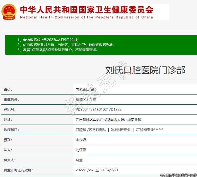 呼和浩特劉氏口腔,診療科目:口腔科 /醫(yī)學影像科 | X線診斷專業(yè) | CT診斷專業(yè)******