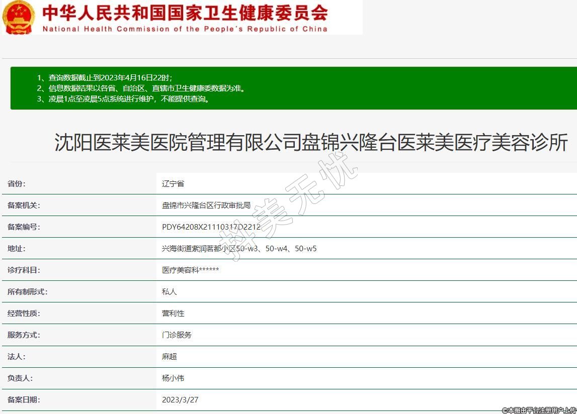 沈陽醫(yī)萊美醫(yī)院管理有限公司盤錦興隆臺醫(yī)萊美醫(yī)療美容診所