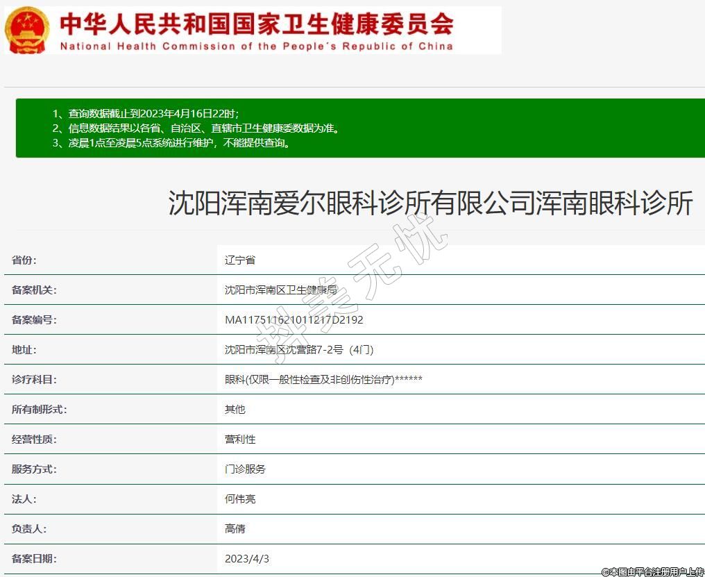 沈陽渾南愛爾眼科診所有限公司渾南眼科診所,診療科目:眼科(僅限一般性檢查及非創(chuàng)傷性治療)******