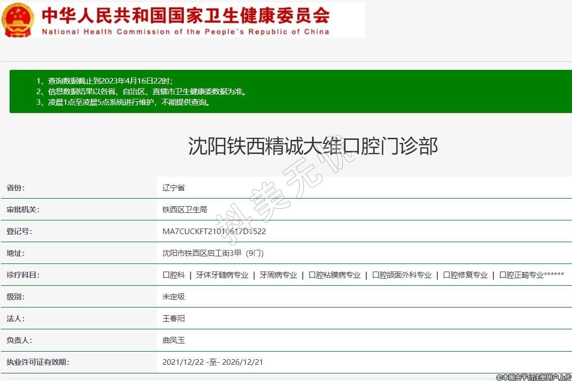沈陽鐵西精誠大維口腔門診部,診療科目:口腔科 | 牙體牙髓病專業(yè) | 牙周病專業(yè) | 口腔粘膜病專業(yè) | 口腔頜面外科專業(yè) | 口腔修復(fù)專業(yè) | 口腔正畸專業(yè)******