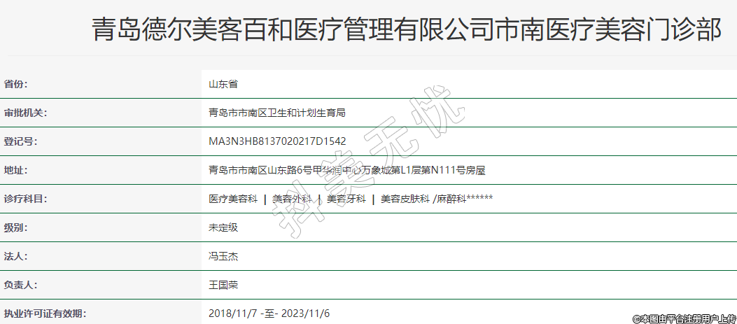 青島德?tīng)柮揽桶俸歪t(yī)療管理有限公司市南醫(yī)療美容門(mén)診部