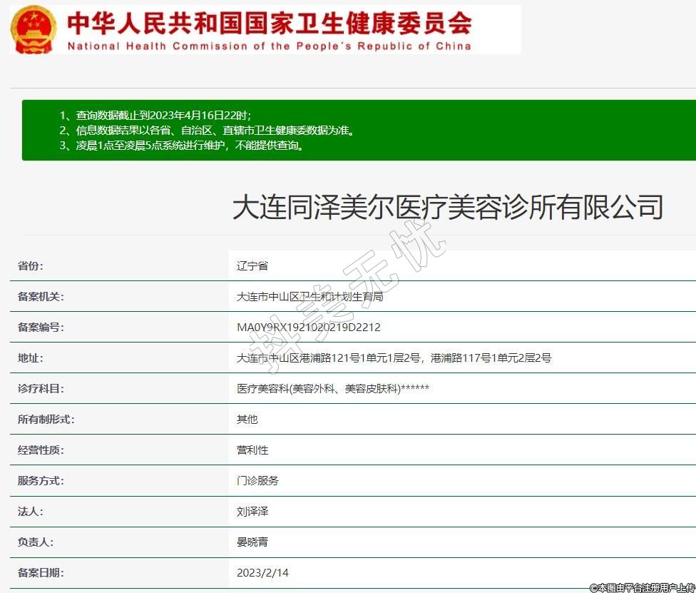 備案機關(guān):大連市中山區(qū)衛(wèi)生和計劃生育局