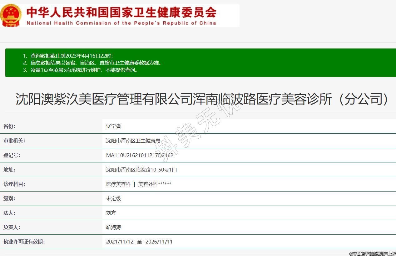 沈陽澳紫汣美醫(yī)療管理有限公司渾南臨波路醫(yī)療美容診所(分公司)