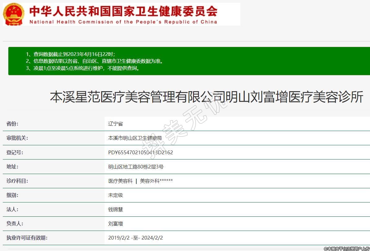 本溪星范醫(yī)療美容管理有限公司明山劉富增醫(yī)療美容診所