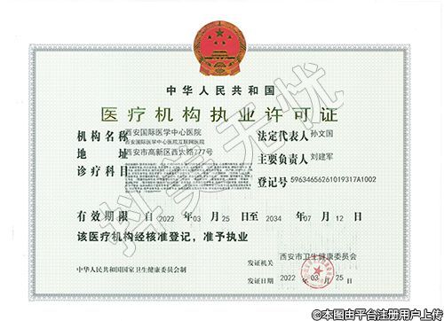 有效期限:自2022年03月25日至2034年07月12日發(fā)證機關:西安市衛(wèi)生健康委員會
