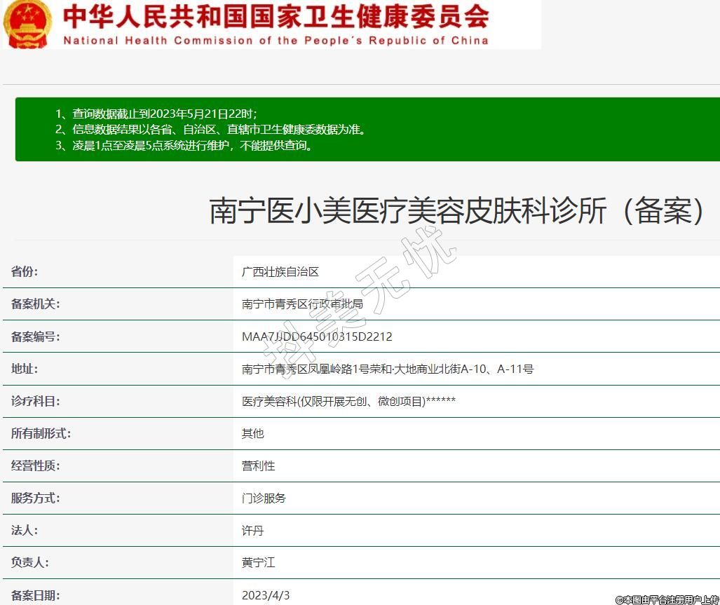南寧醫(yī)小美醫(yī)療美容,診療科目:醫(yī)療美容科(僅限開展無創(chuàng)、微創(chuàng)項目)******