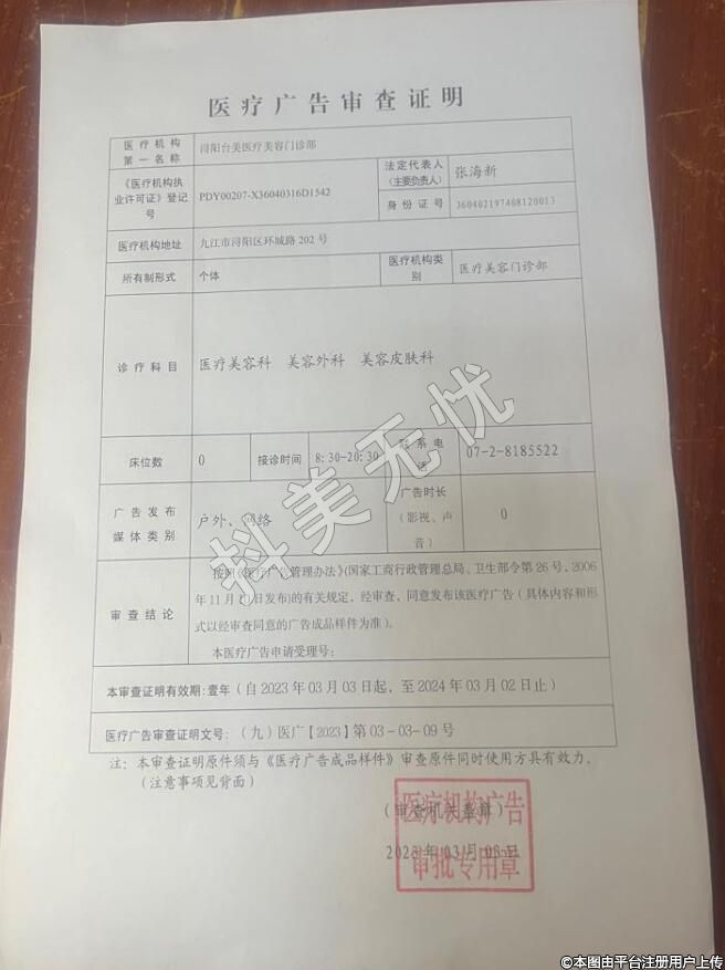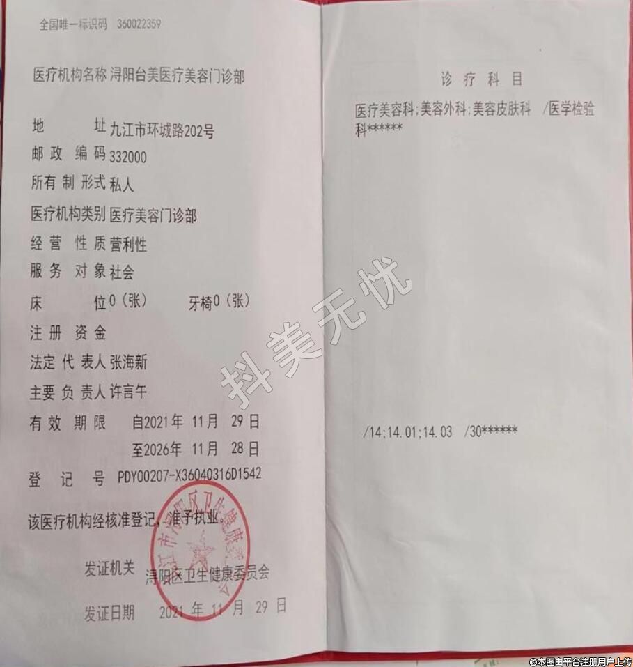 醫(yī)療機(jī)構(gòu)名稱:潯陽(yáng)臺(tái)美醫(yī)療美容門(mén)診部