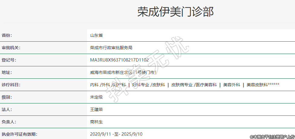 榮成伊美醫(yī)療美容門診部是一家集醫(yī)療美容、科技美容、生活美容于一身的專業(yè)化醫(yī)療服務(wù)平臺。坐落于榮成市中心,占地面積上千平方米,是由榮成市衛(wèi)生局批準(zhǔn)的整形美容專科醫(yī)院。