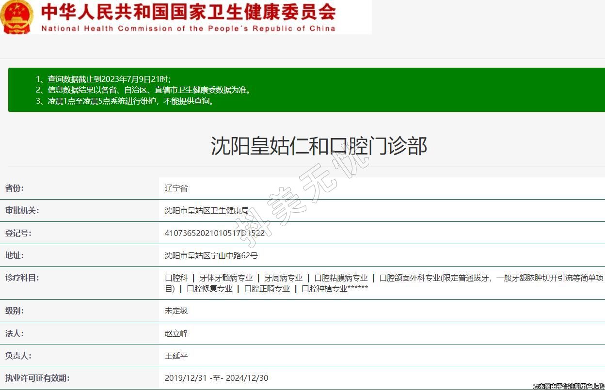 審批機關:沈陽市皇姑區(qū)衛(wèi)生健康局