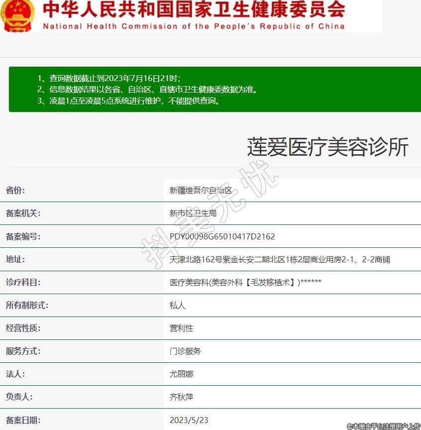 烏魯木齊蓮愛醫(yī)療美容,診療科目:醫(yī)療美容科(美容外科【毛發(fā)移植術(shù)】)******