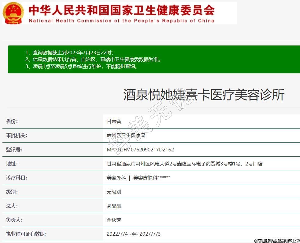 酒泉悅她婕熹卡醫(yī)療美容診所