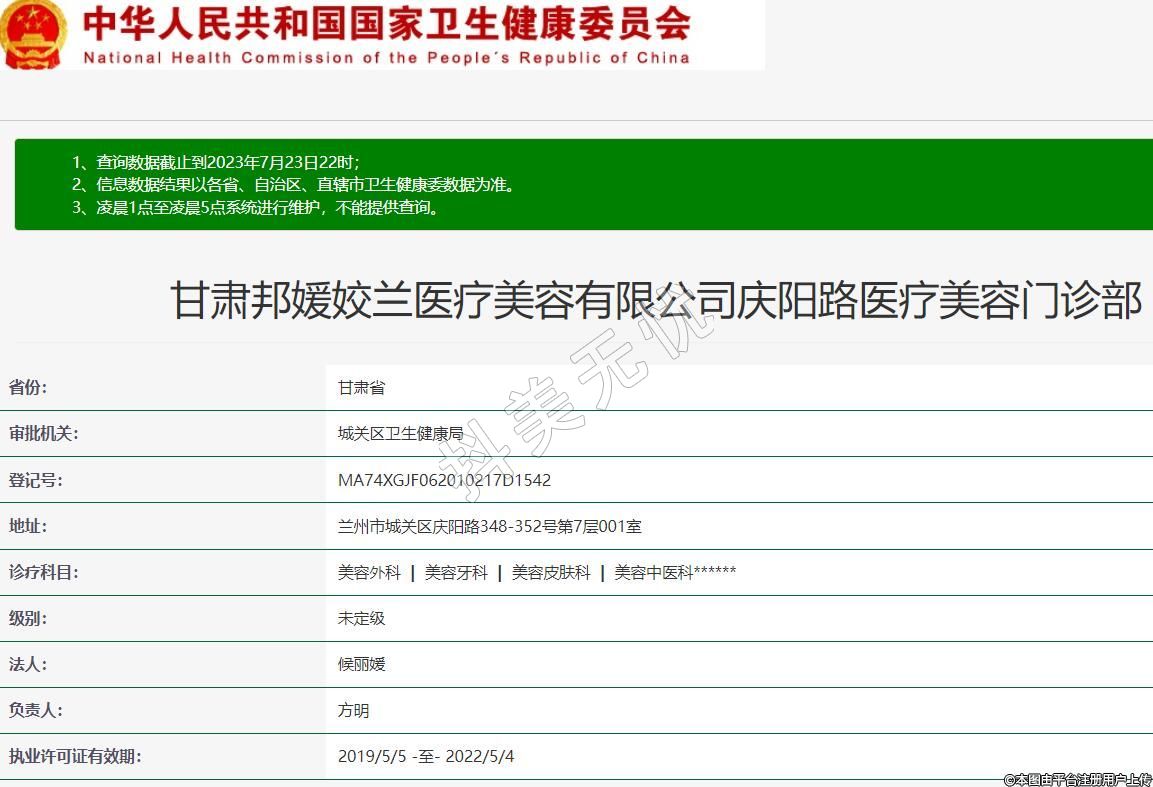 甘肅邦媛姣蘭醫(yī)療美容有限公司慶陽路醫(yī)療美容門診部