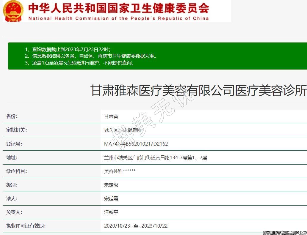 甘肅雅森醫(yī)療美容有限公司醫(yī)療美容診所