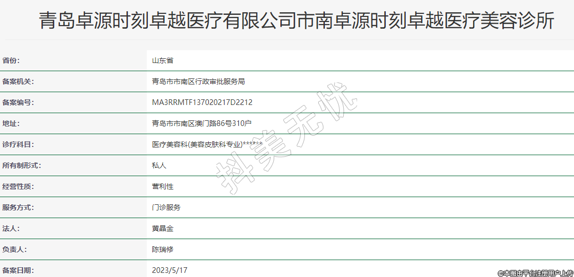 青島卓源時刻卓越醫(yī)療有限公司市南卓源時刻卓越醫(yī)療美容診所