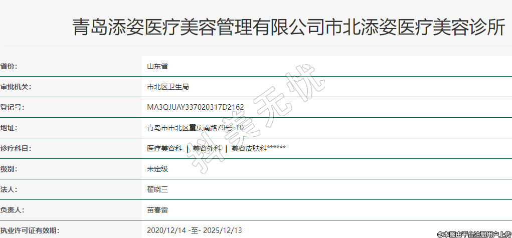 青島添姿醫(yī)療美容管理有限公司市北添姿醫(yī)療美容診所