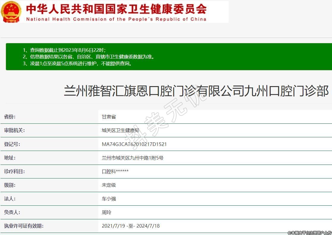 蘭州雅智匯旗恩口腔門診有限公司九州口腔門診部