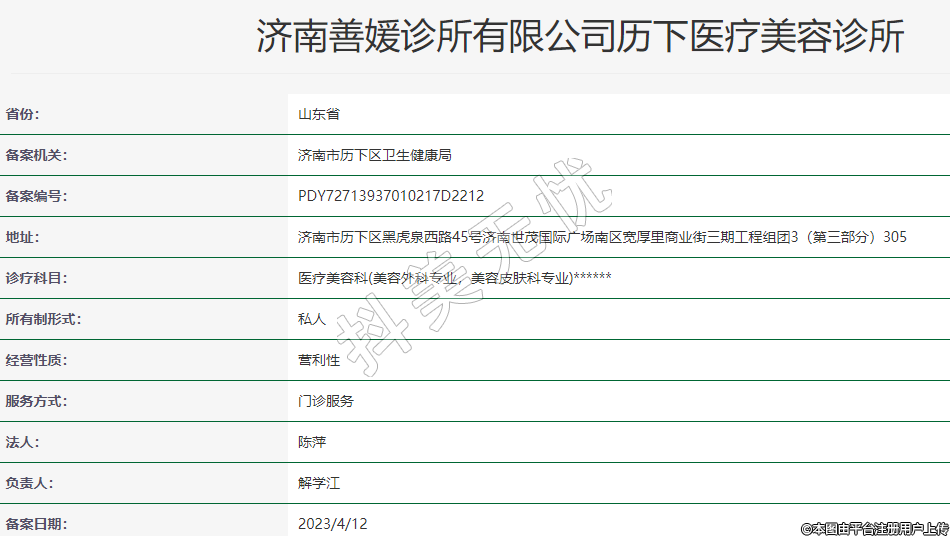 備案機關:濟南市歷下區(qū)衛(wèi)生健康局