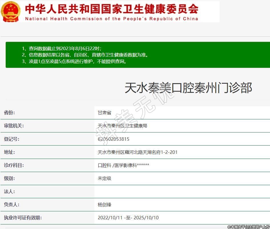 審批機關(guān):天水市秦州區(qū)衛(wèi)生健康局