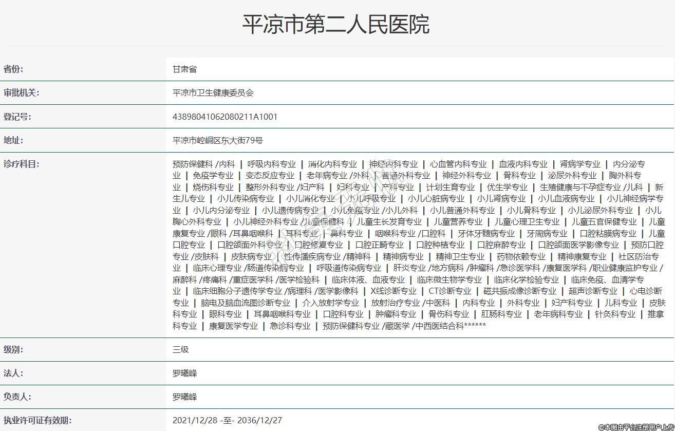 審批機(jī)關(guān):平?jīng)鍪行l(wèi)生健康委員會