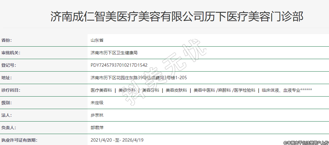 濟(jì)南成仁智美醫(yī)療美容有限公司歷下醫(yī)療美容門診部