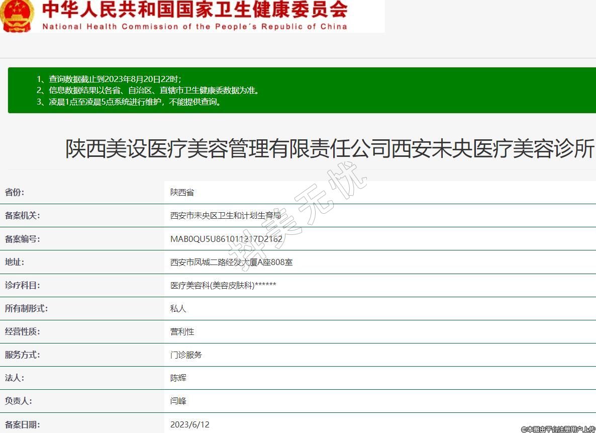 陜西美設(shè)醫(yī)療美容管理有限責(zé)任公司西安未央醫(yī)療美容診所