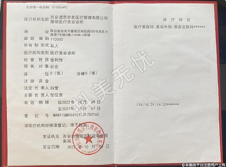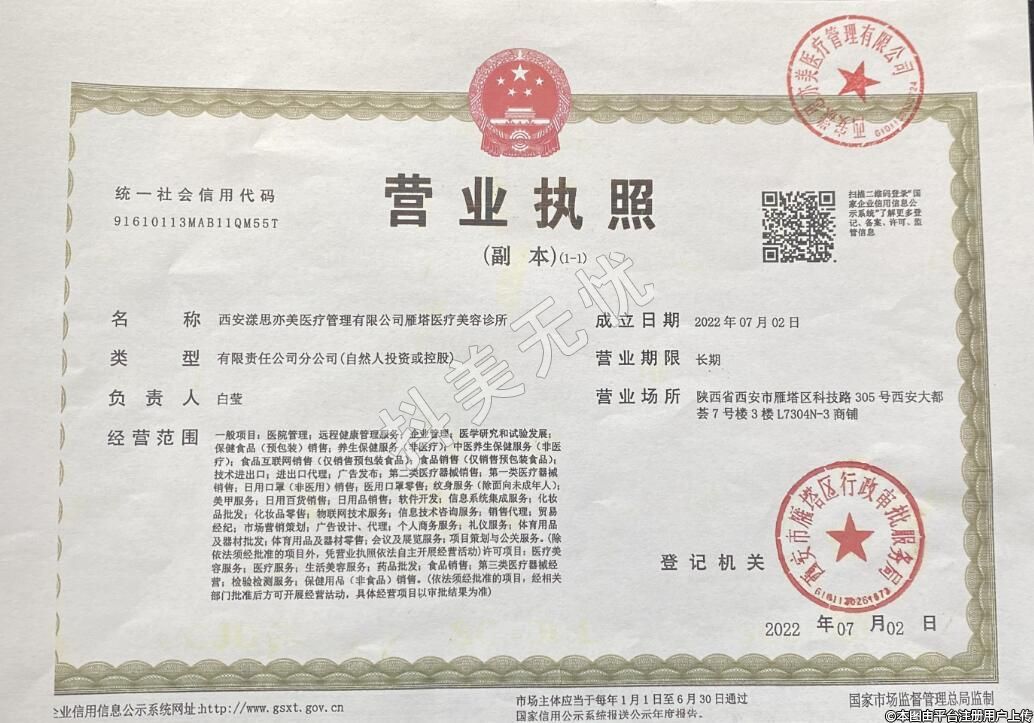 醫(yī)療機(jī)構(gòu)名稱:西安漾思亦美醫(yī)療管理有限公司雁塔醫(yī)療美容診所